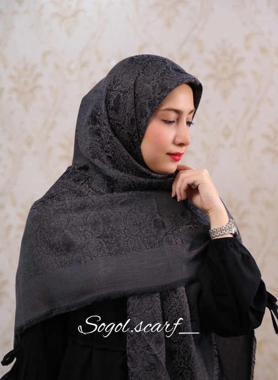 روسری ژاکارد رنگ ذغالی طرح پوست ماری