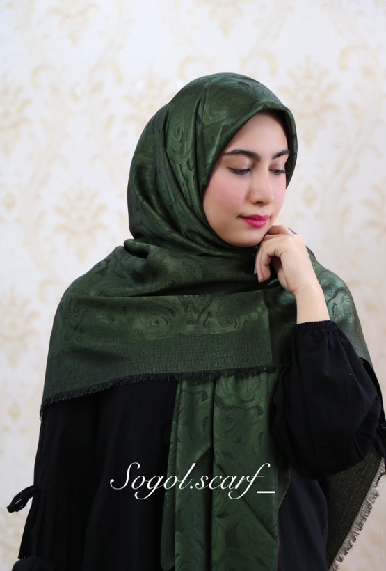 روسری ژاکارد طرح گل رز رنگ سبزپررنگ