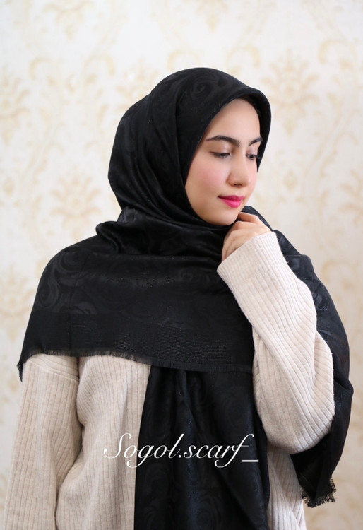 روسری ژاکارد طرح گل رز رنگ مشکی