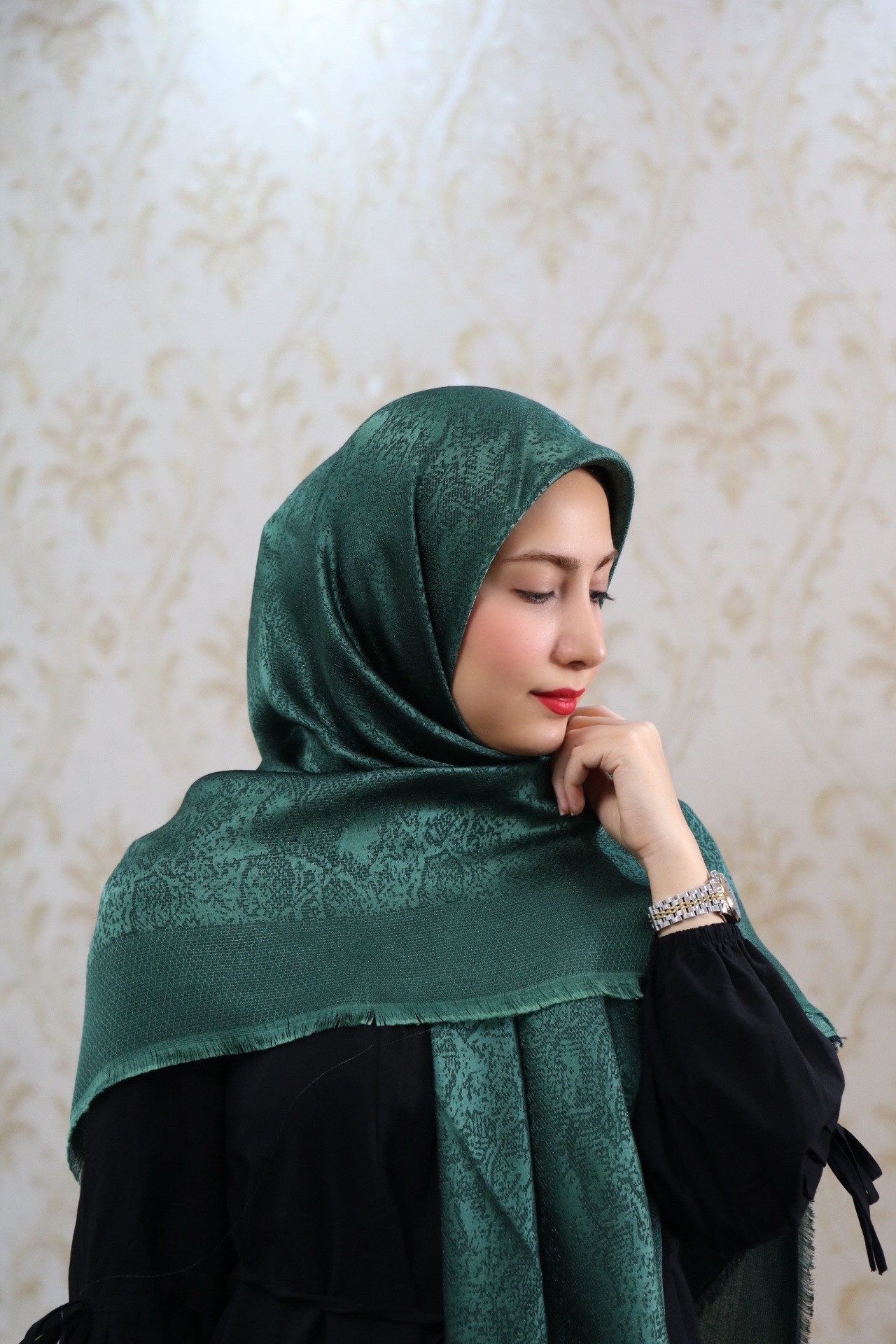 روسری ژاکارد رنگ سبز زیتونی طرح پوست ماری۲۷۵٬۰۰۰ تومان