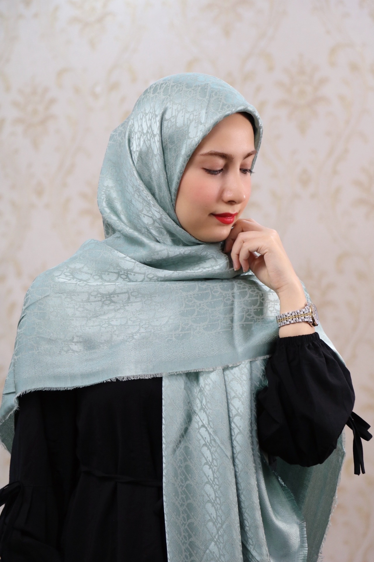 روسری ژاکارد طرح دیور رنگ سبز پررنگ