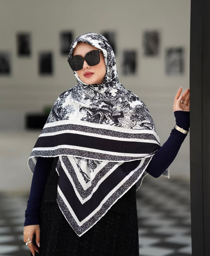 روسری ژاکارد طرح دیور رنگ مشکی